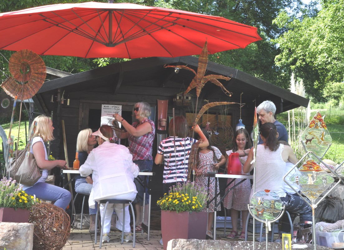 Die „Glasbäckerei " hat an diesen Tag Besuch von Eva`s "Weidenflecht-Träume“ .